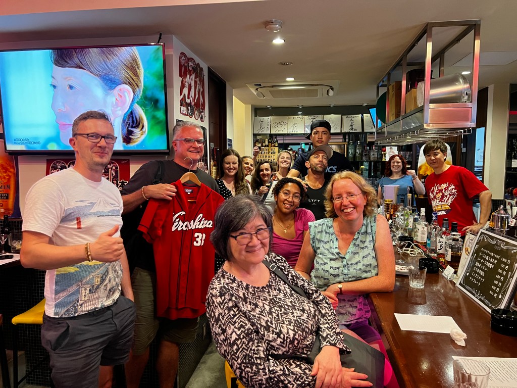 Afterwards our guide took us to a local sports bar where the group had a great time. One drink turned into 3 hours – a much needed release from the emotion of earlier in the day. And I learned a bit about the local baseball team, the Hiroshima Carp. They were started after the war and have a special bond with the city as they were created via donations from Hiroshima citizens rather than corporations which is typical of Japanese baseball.
