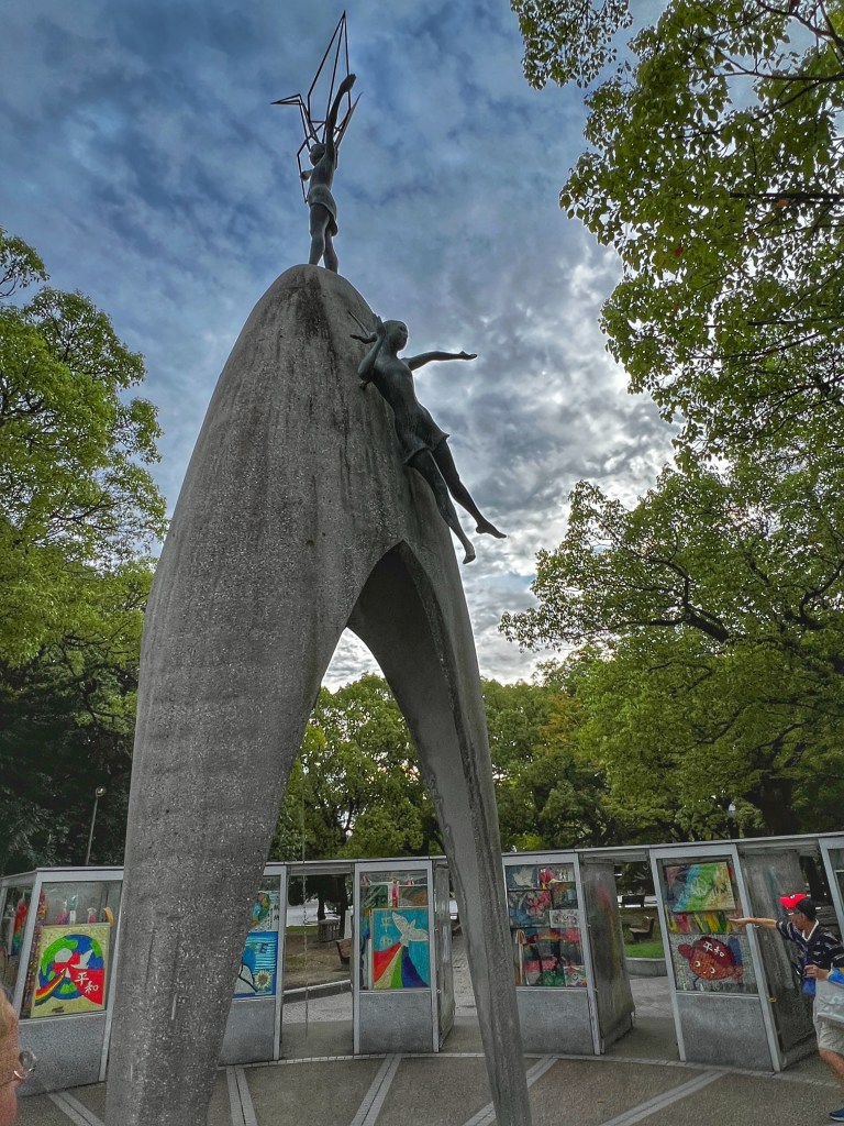 We proceeded to the Children’s memorial where we placed paper cranes, signifying Sadako Sasaki’s story of a girl who would survive the bombing but succumb almost 10 years later to radiation-induced leukemia. As we were standing at the memorial, a group of schoolchildren began singing. My eyes filled with emotion.
