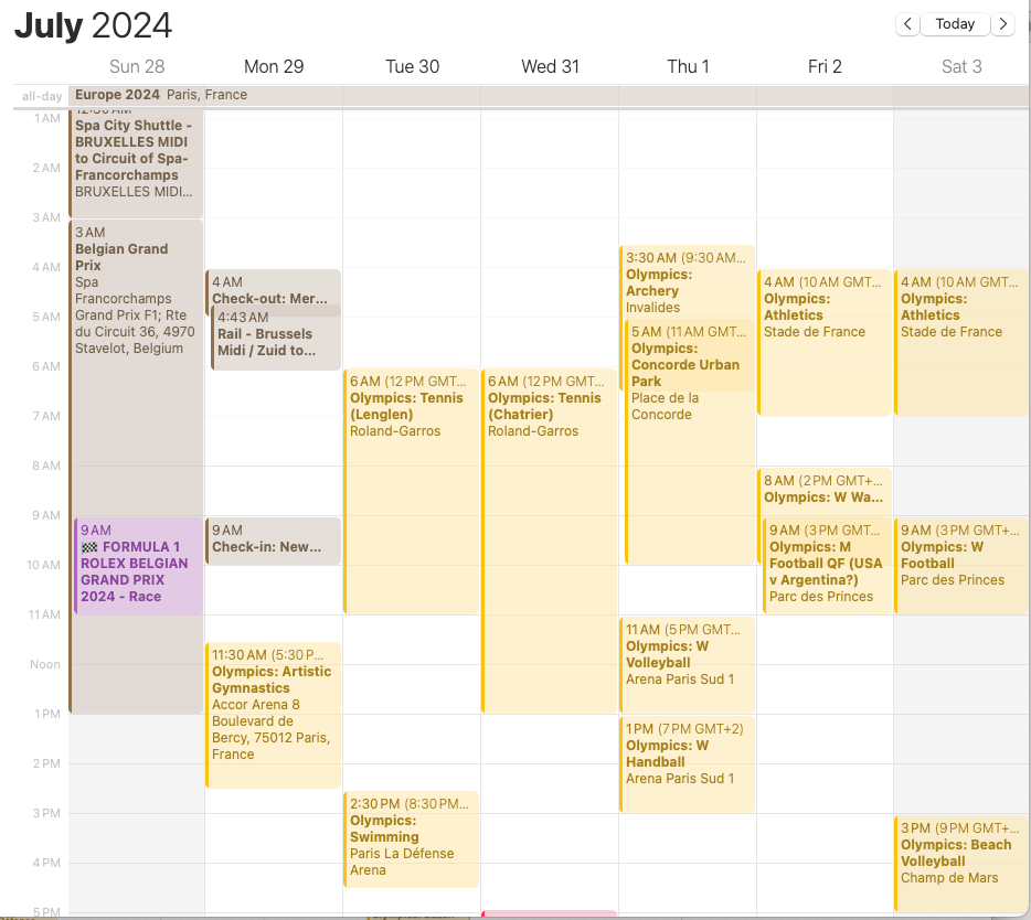 For those interested, here’s my itinerary for the first week of the trip, including a visit to Spa Francorchamps for the Belgium F1 Grand Prix on Sunday July 28.