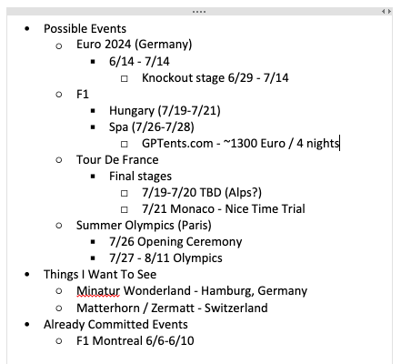 Back towards the end of 2023, I knew that I would have some free time this summer as my current contract was ending. Focusing on Europe, I started a list of potential events to coordinate travel with.