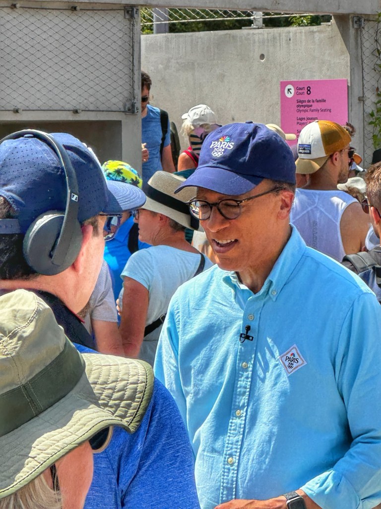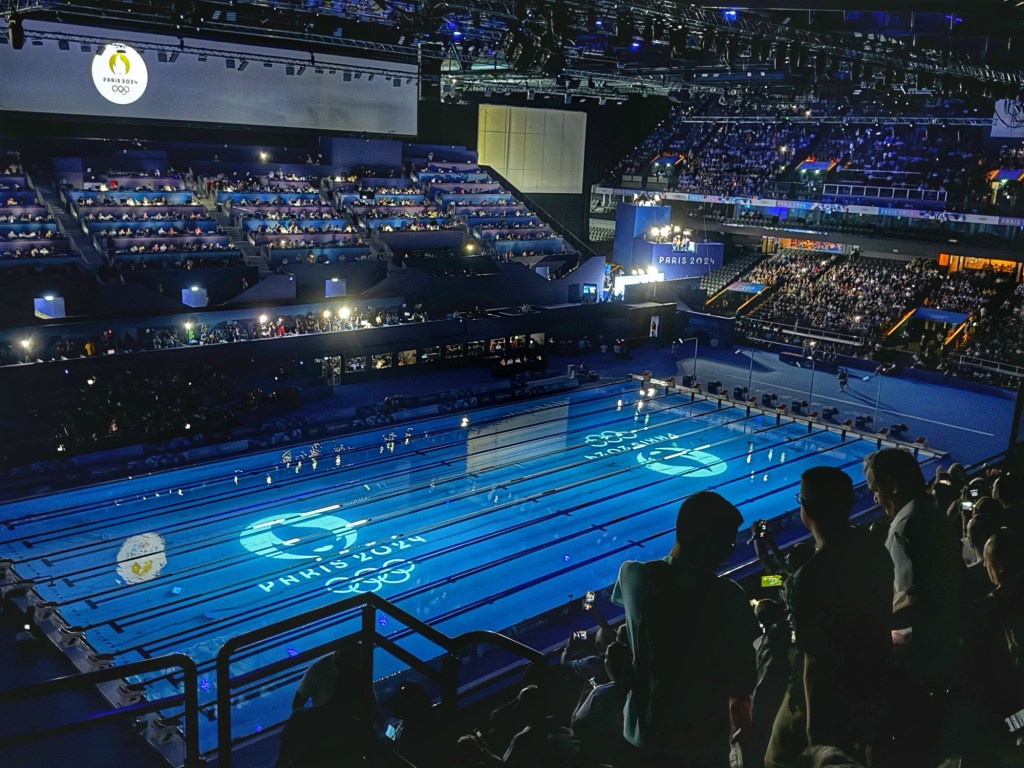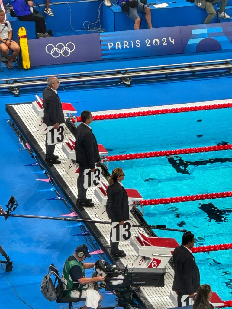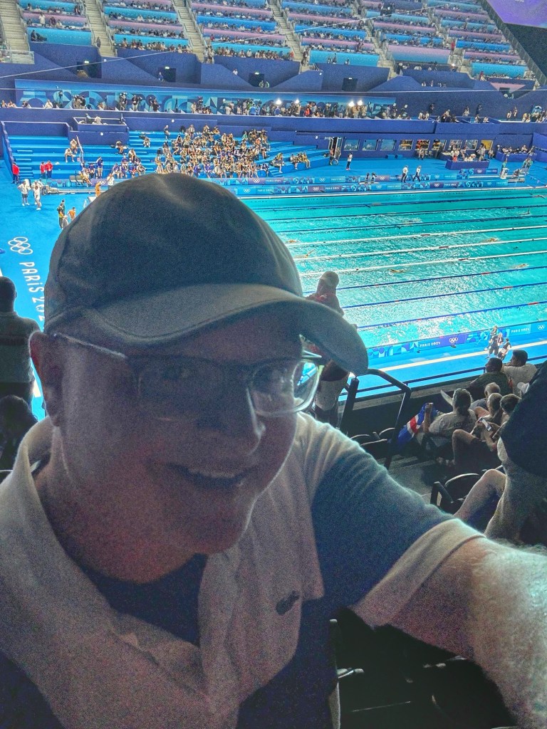The atmosphere was electric – particularly when French swimmer Leon Marchand was swimming. The French cheer him the way Americans had cheered Michael Phelps. When he would come up for air during the backstroke, the whole arena would chant “Leon!” Great moments at the pool.