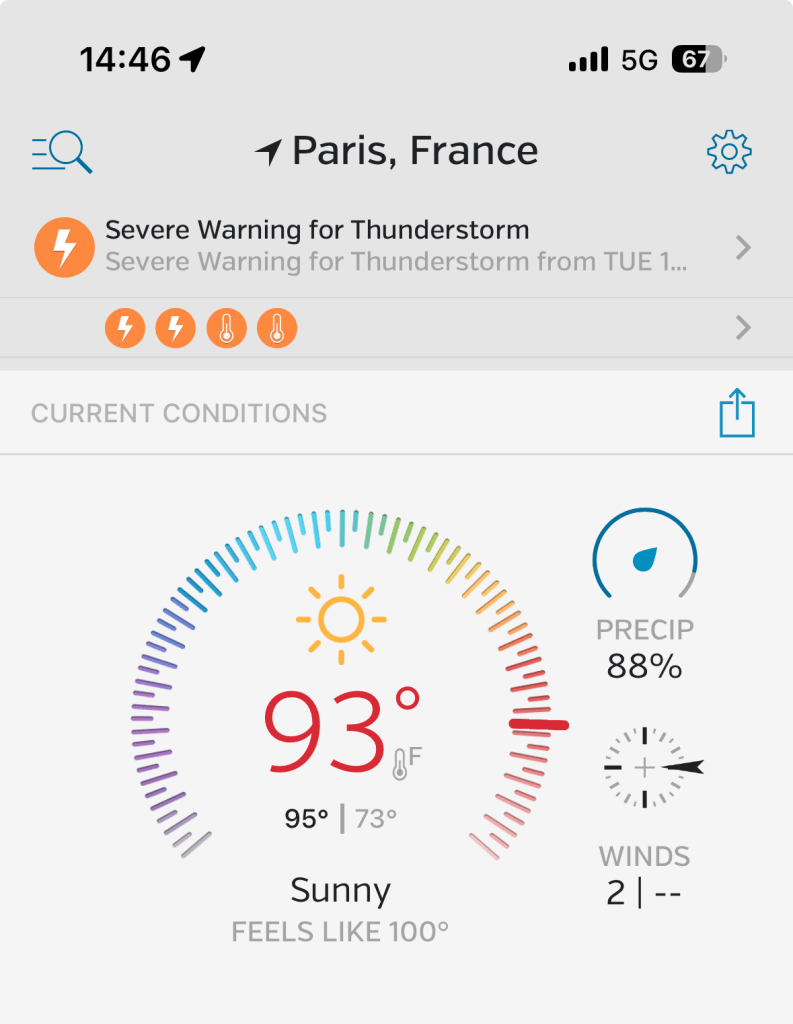 When I was checking the weather forecast for Paris about a week ago, I noticed the temperature today was going to be exceptionally hot. Miami hot. Singapore hot. It certainly was.