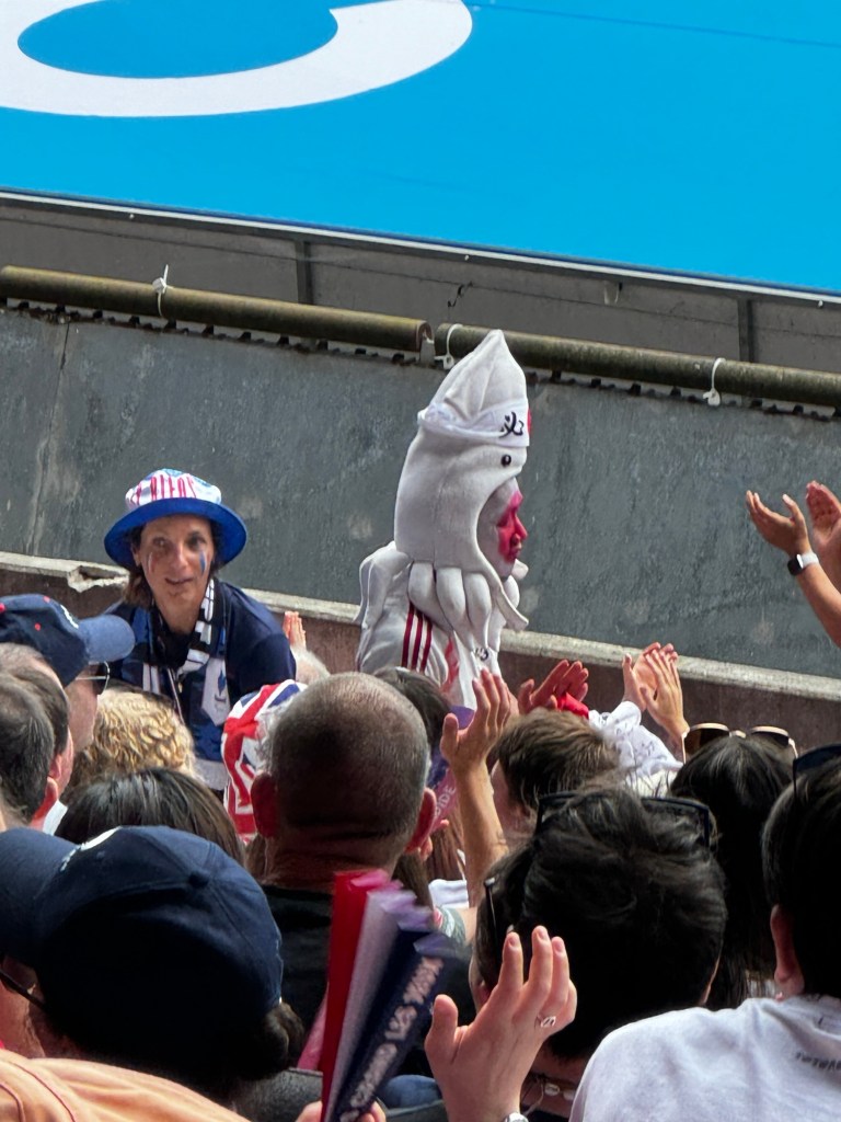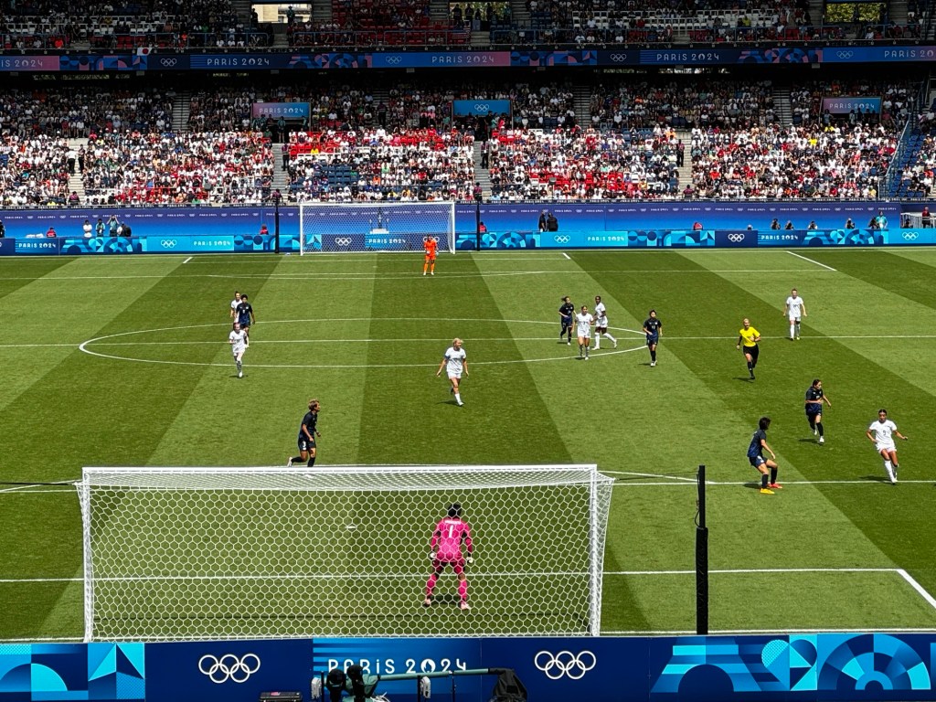 In any case, the game was 0-0 in extra-time when the USA’s Trinity Rodman scored a gem of a goal in the goal in front of my seat. For the first time during these Olympics I leaped out of my seat and yelled. One of the most exciting moments I’ve had at a live football game (and I’ve been to a few).