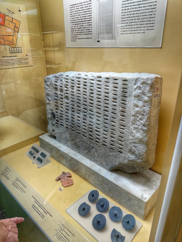 A couple of testaments to Ancient Greek democracy can be found – a “voting machine” in the Agora Museum and the ruins of the Tholos, the original meeting place of the assembly. It’s reassuring that this form of representative government still exists to this day (for now).