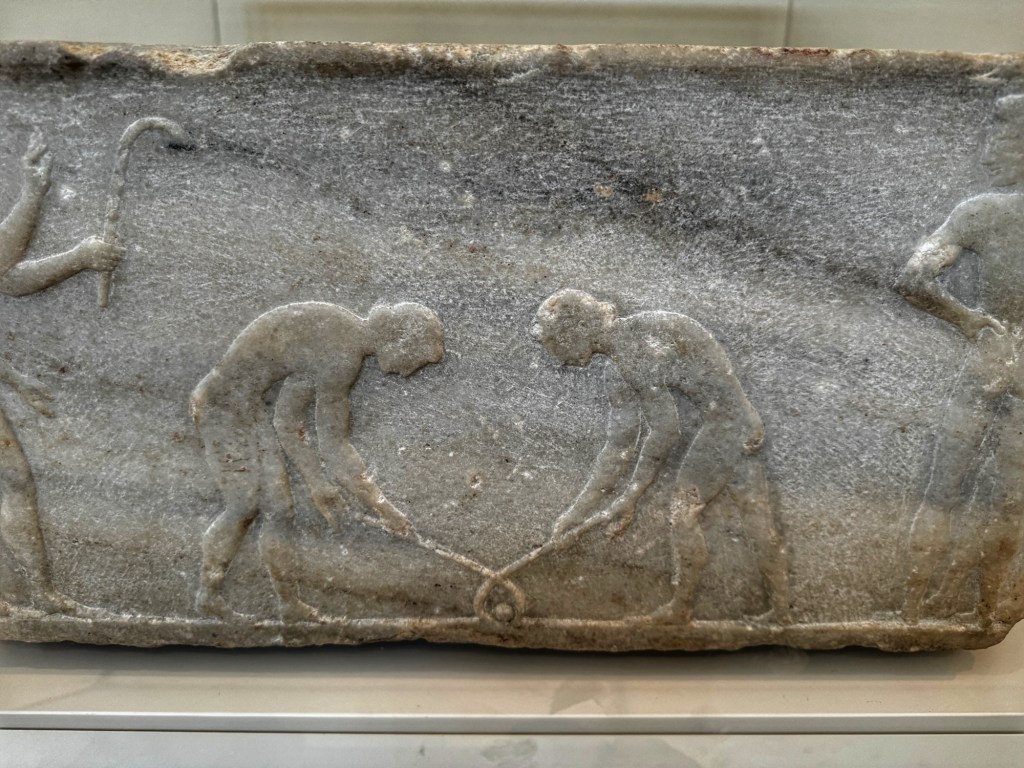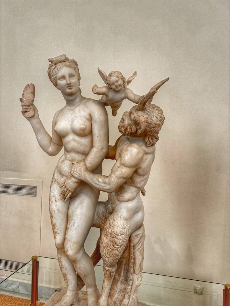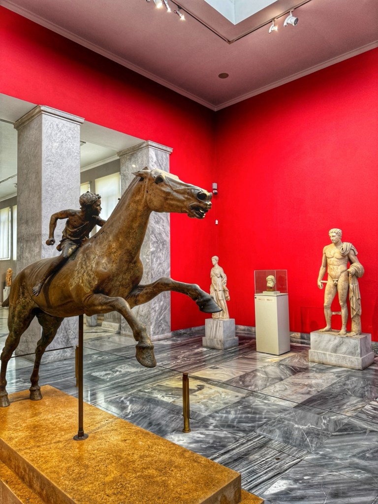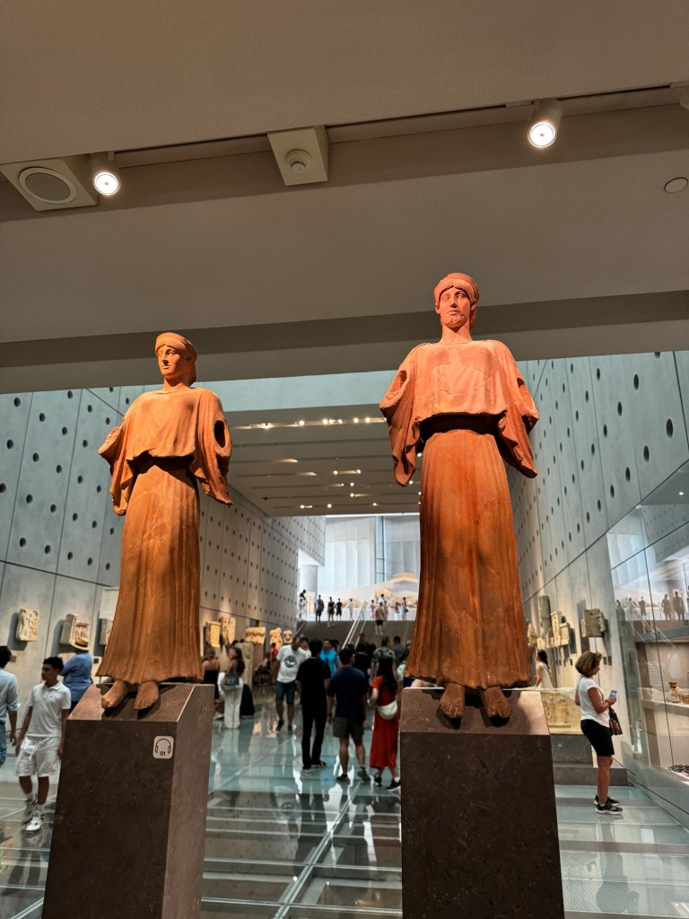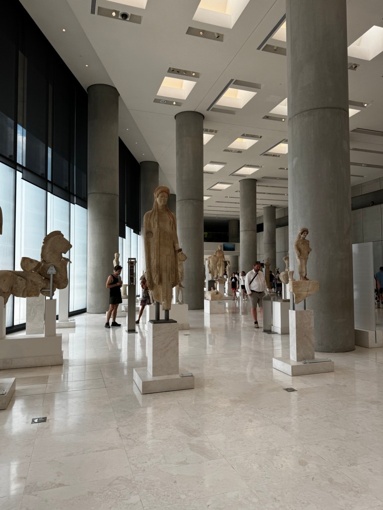 The Acropolis Museum was up next. Built in 2009 to permanently house artifacts found on the Acropolis, it is a comprehensive tour of Greek history. The highlight is the top floor, which has a reconstruction of the “marbles” which adorned outer and inner friezes of the Parthenon. Several are missing as they were taken to the British Museum over 100 years ago and have not been returned.
