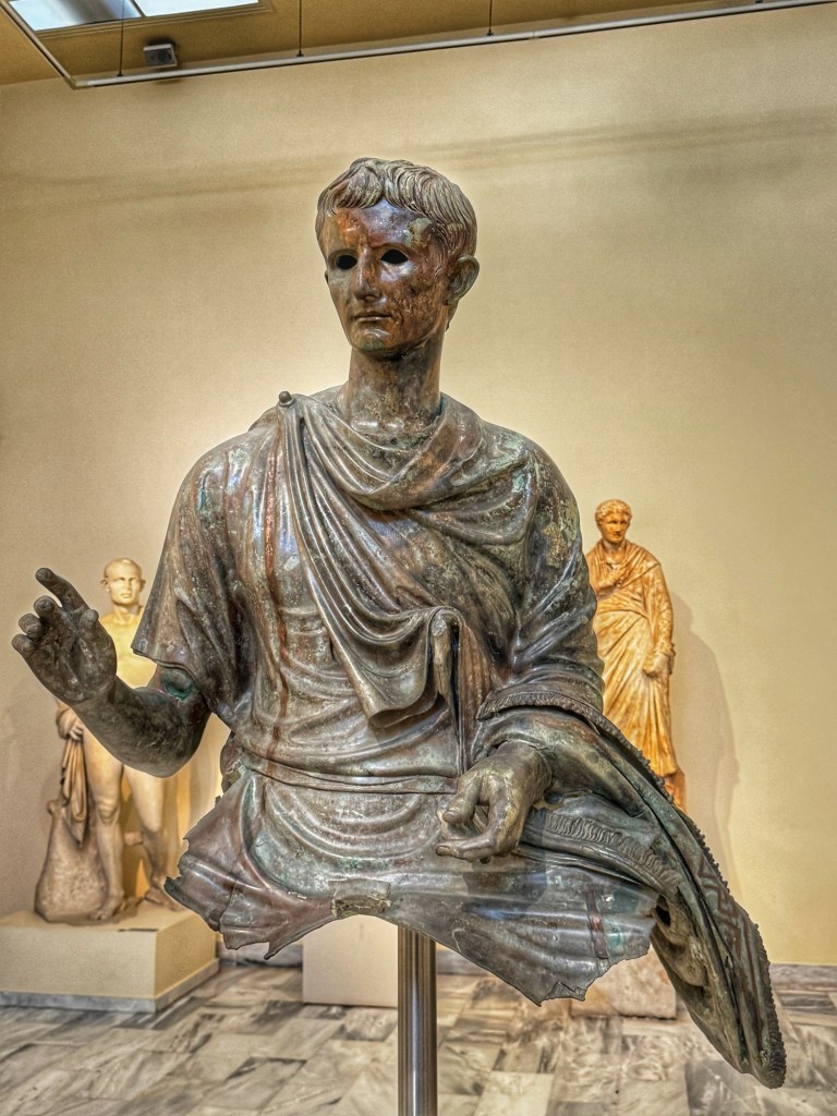 After the Agora, I trekked up to the National Archaeological Museum. A beautiful building, it houses artifacts of civilization from prehistoric times to late antiquity. The Bronze Age, the Cycladic era and the Golden Era are all represented. It was amazing to see how the art progressed over the millennia.