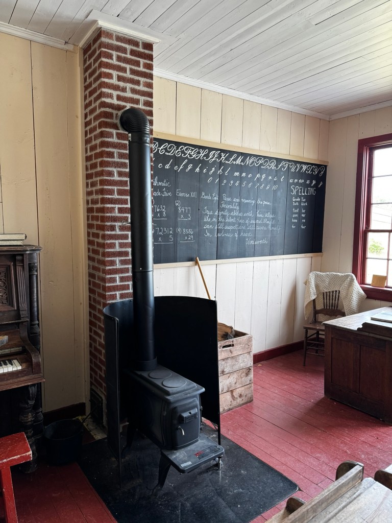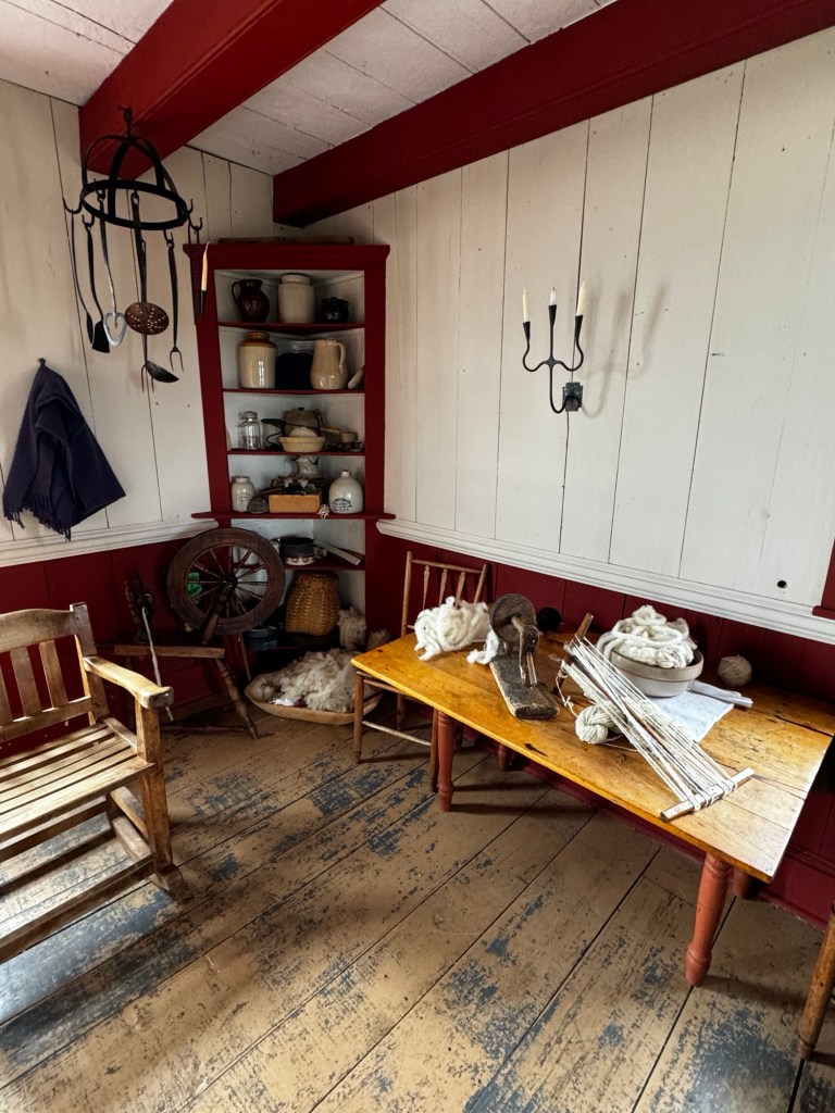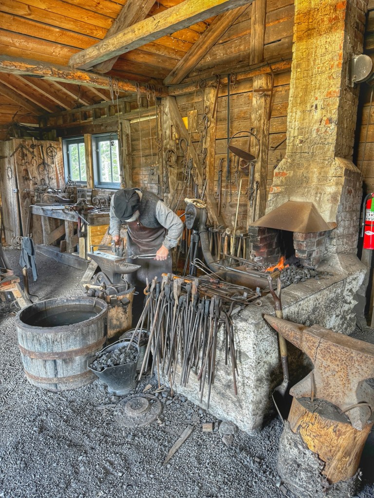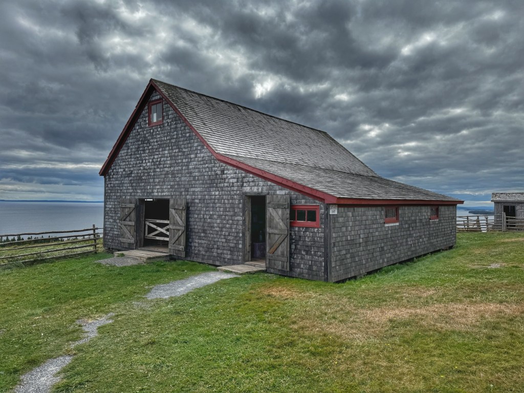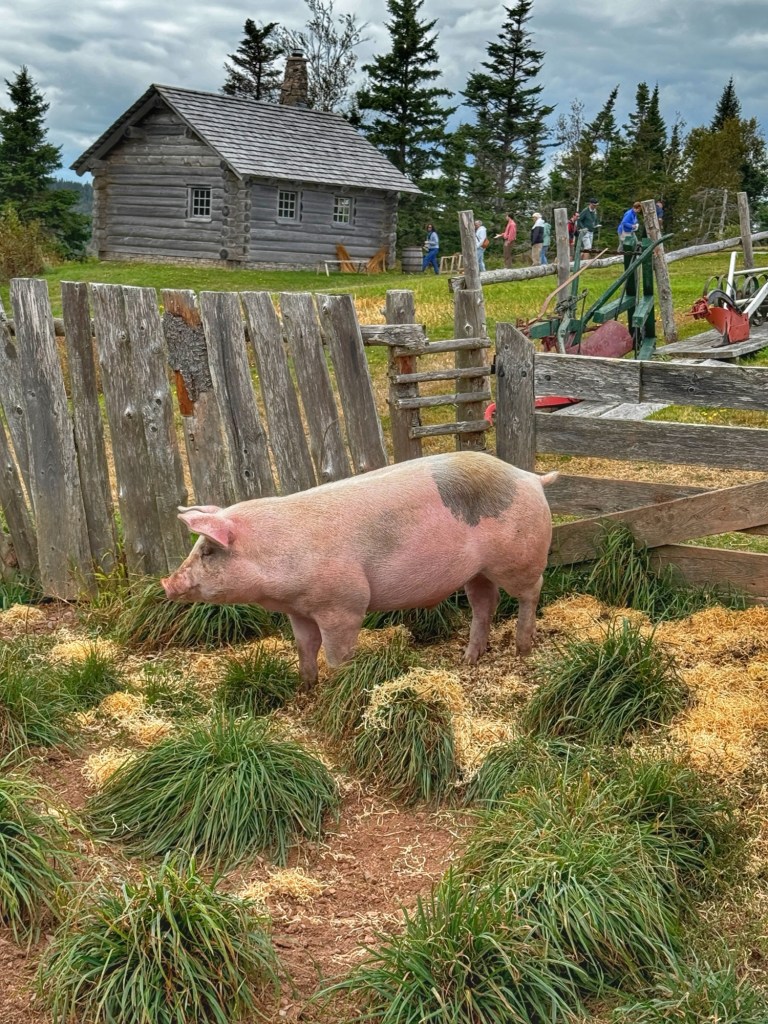 After an hour long bus ride through beautiful lakeside scenery, we arrived at the village. Actual structures were imported from other parts of the island and assembled on a hilltop overlooking the lake and the only place where you can see all 4 of Cape Breton’s counties.