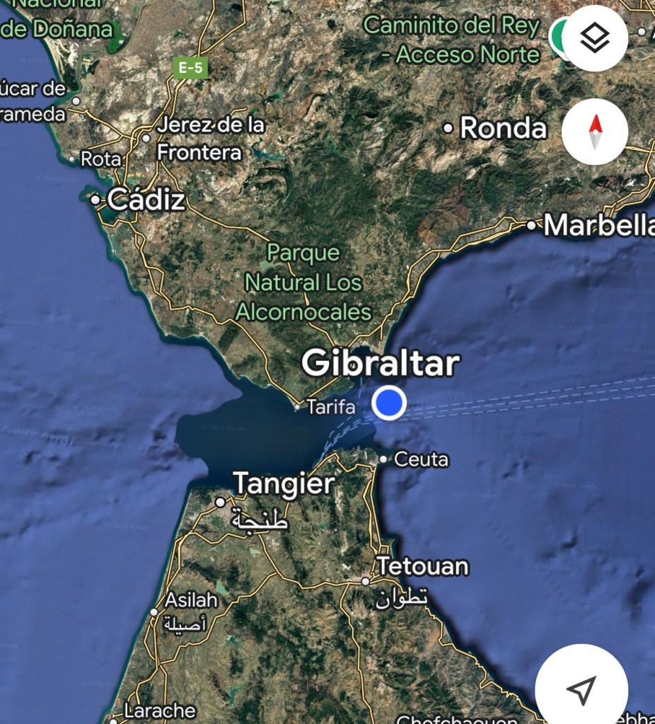 A few hours after we left Málaga, we had one of the highlights of the trip – passing through the Strait of Gibraltar. Although it was night, I could still make out the Rock. it was fun to view Europe from one side the ship, walk across the deck and view Africa from the other.
