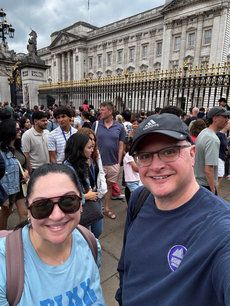 After a relatively short red-eye flight, we landed at Heathrow Wednesday morning, met up with our friend Art, dropped the bags at the hotel and set about walking. I’ve found one of the best ways to prevent terrible jet lag is to walk a bunch on the first day. And a good 12 miles of walking we did…even managing to catch the changing of the guard at Buckingham Palace.