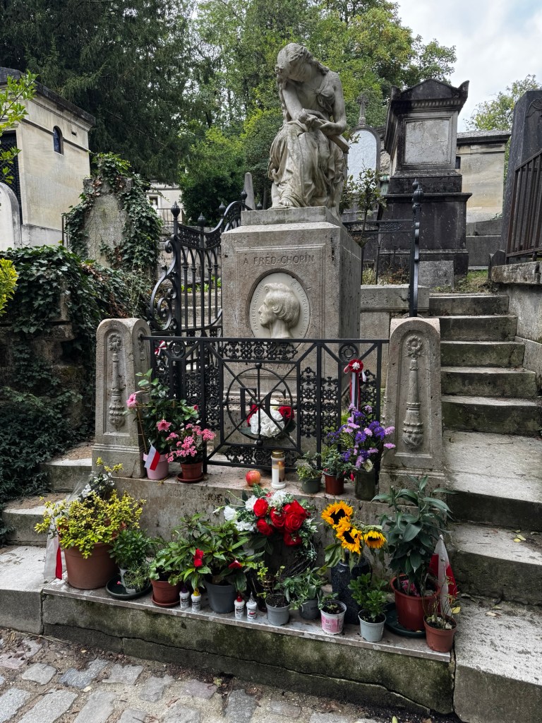 On Sunday, we had breakfast at a neighborhood boulangerie and took the metro to Pere Lechaise cemetery, resting place of many famous artists, authors and musicians including Oscar Wilde, Frederic Chopin and (of course) former The Doors frontman Jim Morrison.