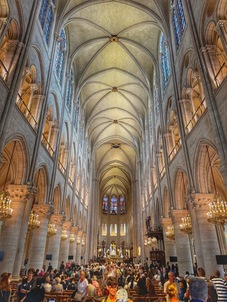 Earlier in the day I lucked out and secured entry to the cathedral of Notre Dame for 2:30pm. After the fire in 2019, the French did a remarkably quick job of rebuilding and reopening last year. It was fascinating to see the renovations – portions of the concrete vault replaced from where they collapsed.