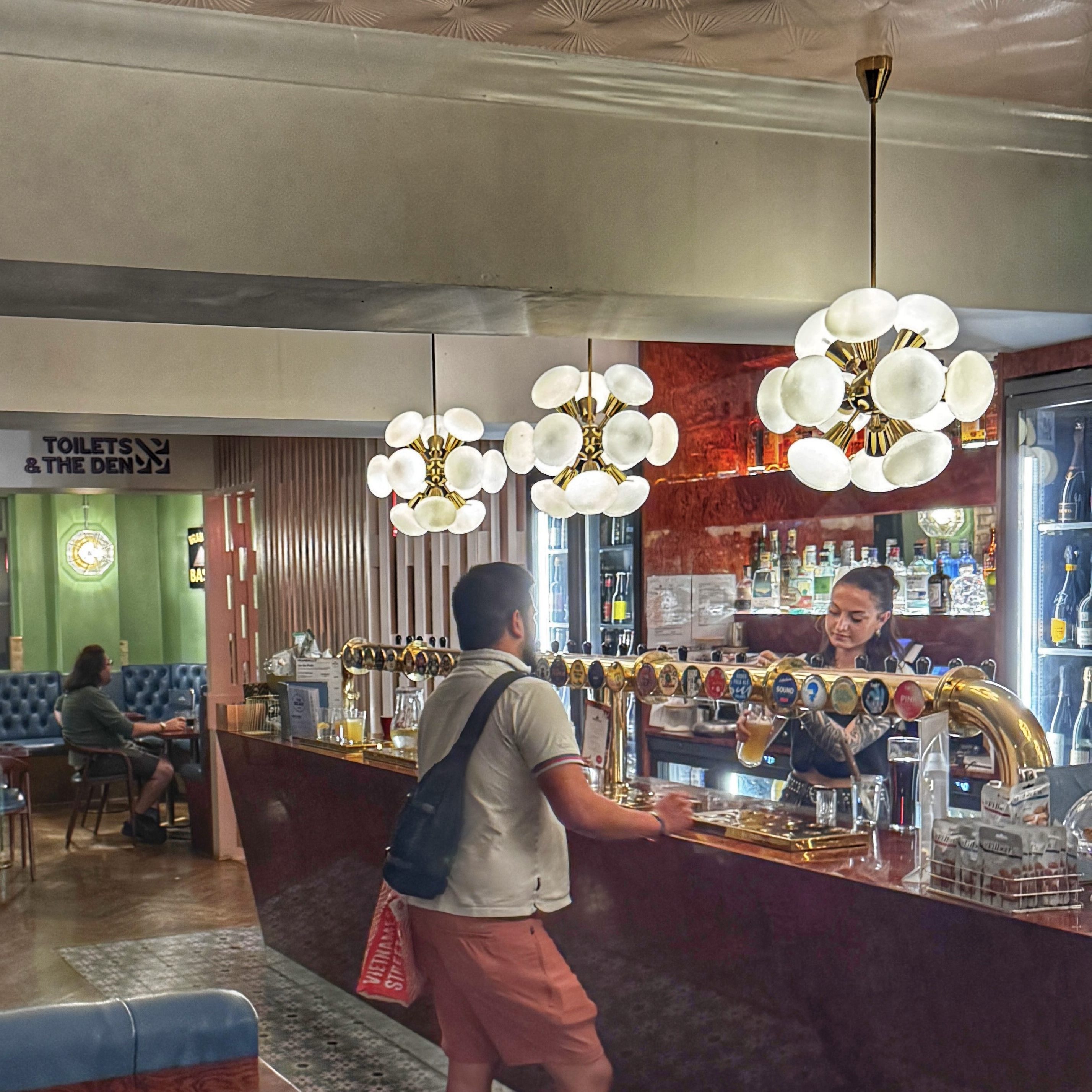 —Ordering in a pub in England is a dream: simply go up to the bar to order food and drinks. The transaction is closed out immediately, and food (if ordered) is brought to your table when ready. I wish more pubs in the US would adopt this system. https://www.thebearpaddington.com