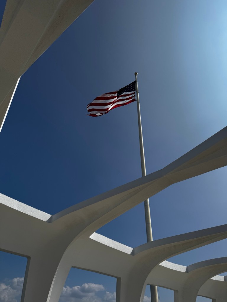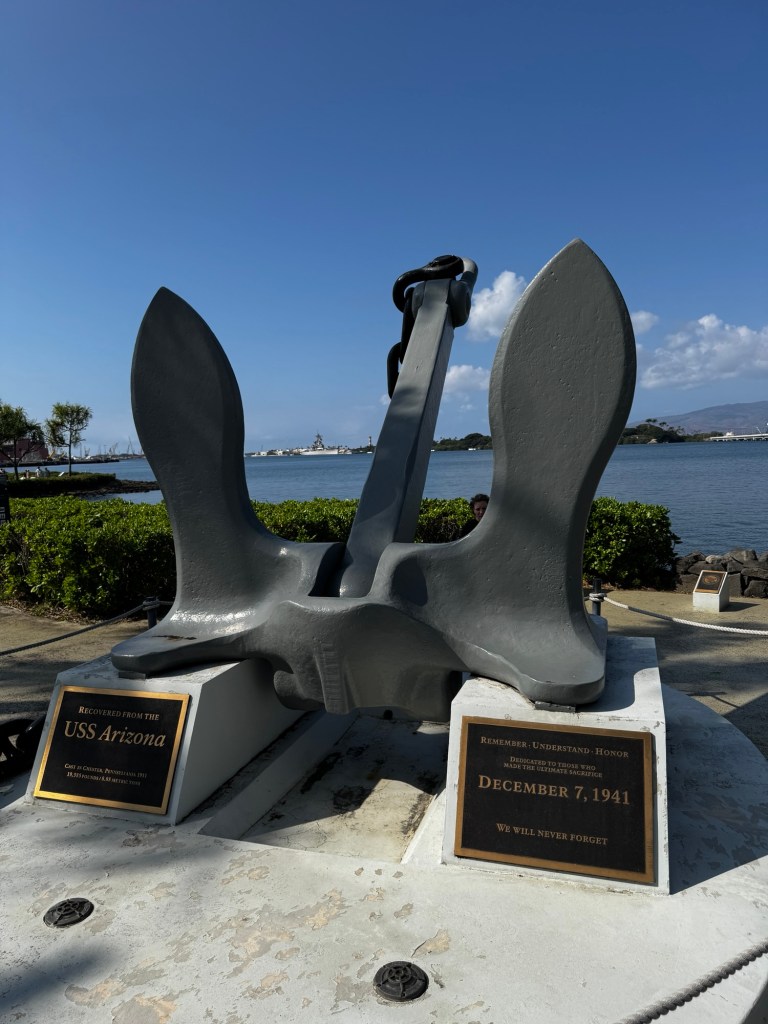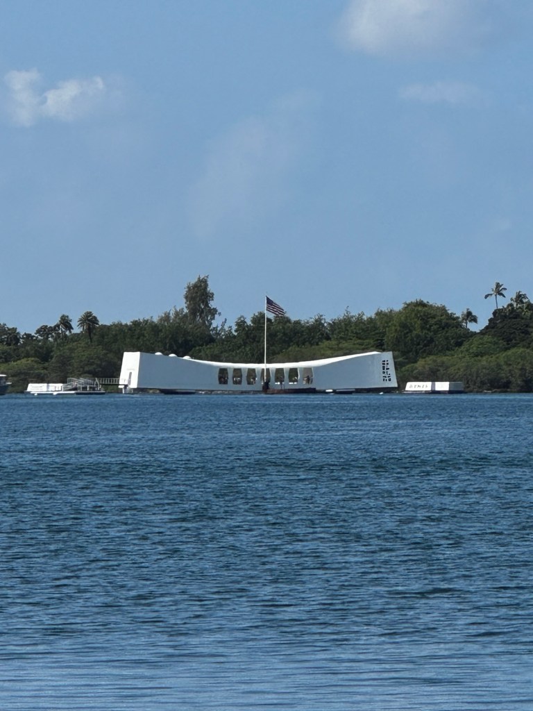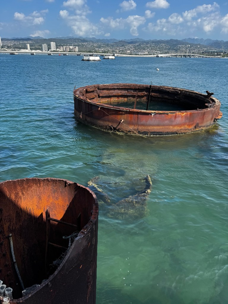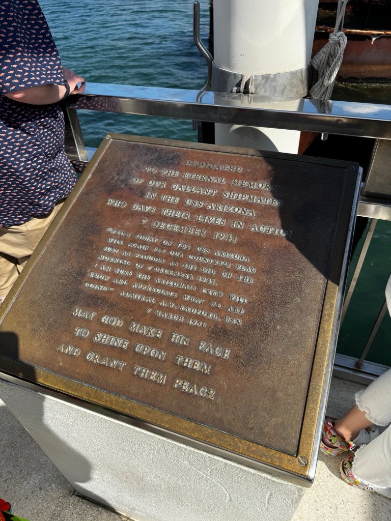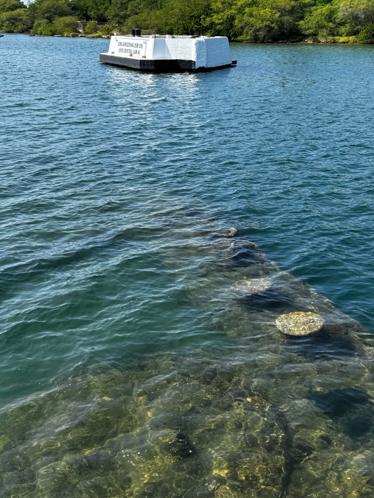 The centerpiece of a visit to Pearl Harbor is a boat ride to the resting place of the USS Arizona, with 1100 of her crew still entombed within her as they’ve been for almost 84 years. This solemn spot evokes quite a bit of emotion.