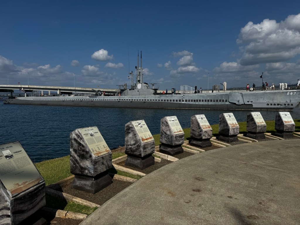 On Friday, I headed out to Pearl Harbor, one of my must-sees for this adventure. The scene of Japan and America’s entry into WWII has been made a national park with a great audio tour narrated by Jamie Lee Curtis.