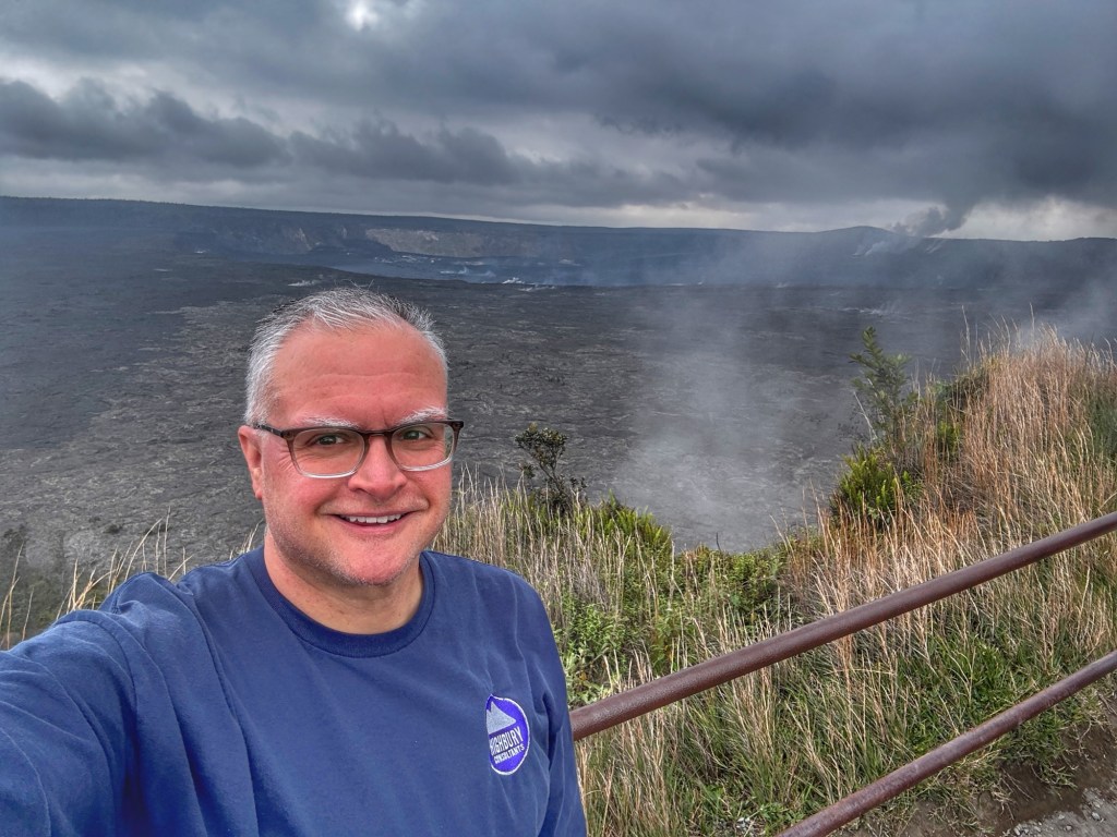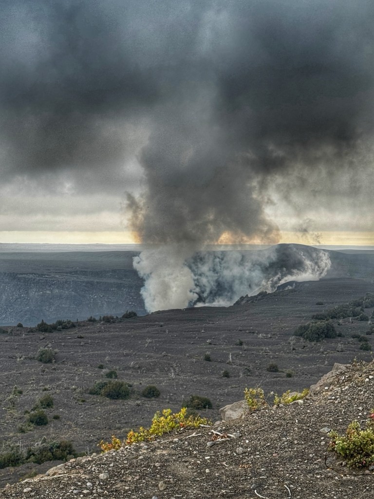 While a bit more dramatic during an eruption when the crater sometimes fills with lava, it was still breathtaking with some volcanic gases escaping at the edge.